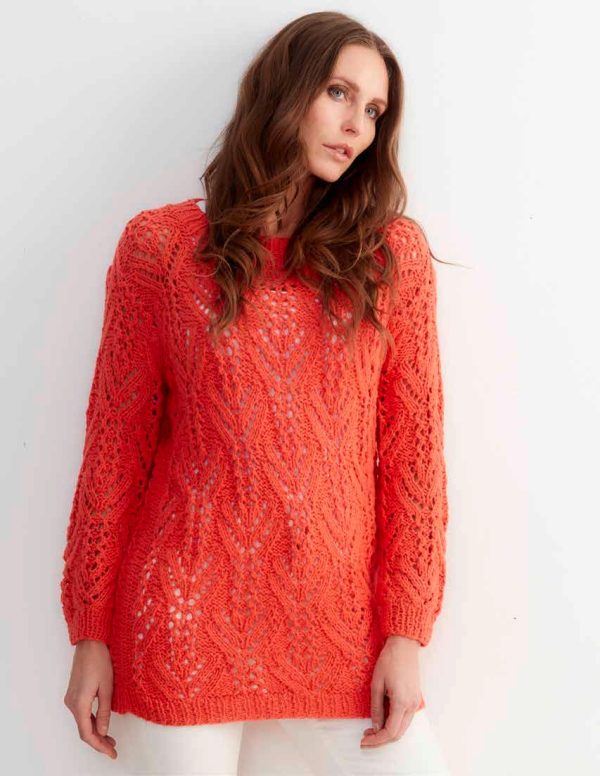 MATERIALS: Gedifra Vivaldi (100% Bio Cotton, each ball 120 m/50 g): 400 (450) g in Coral Col. #3106 1 circular needle each sizes US 6 and 7 (4 and 4.5mm).