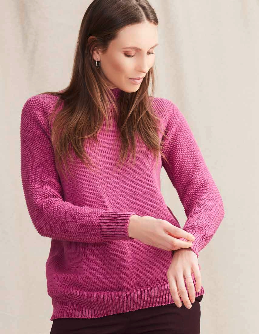 MATERIALS: Gedifra „Cottolana 4-Ply“ (50% Wool, 50% Cotton, 170 m/50 g): 550 g in Magenta #2416. 1 circular needle each sizes US 4 and 7 (3.5 and 4.5 mm).
