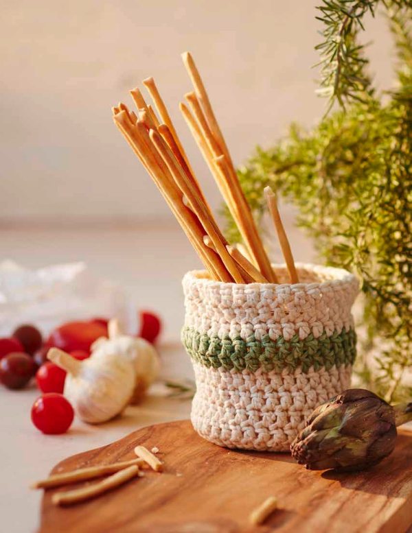 MATERIALS: Gedifra Arborea (100% Cotton: 140 m [153 yd]/50 g): 100 g each in Natural Col 2202 and in Green Col 2210 1 crochet hook size 6 mm (US J-10).
