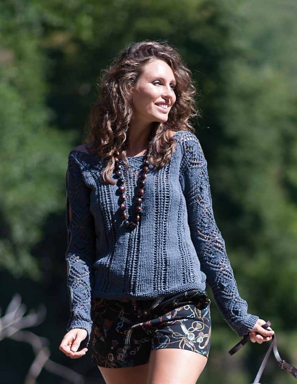 MATERIALS: Gedifra Arborea (100% cotton; 140 m [154 yd]/50 g): 300/350 g in Jeans Blue col 02207 Size 5.5 mm (US 9) needles