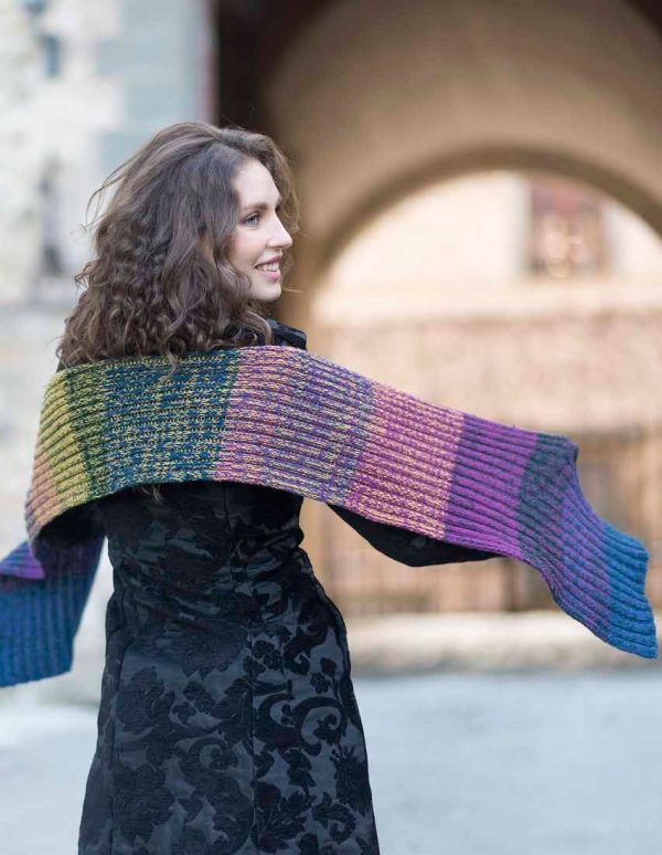 Gedifra Cashmere Lace (95% cashmere, 5% wool; 175 m [192 yd]/25 g): 25 g each in blue col 02807 (col 1), yellow col 02803 (col 2), dark green col 02808 (col 3) and cyclamen col 02806 (col 4).