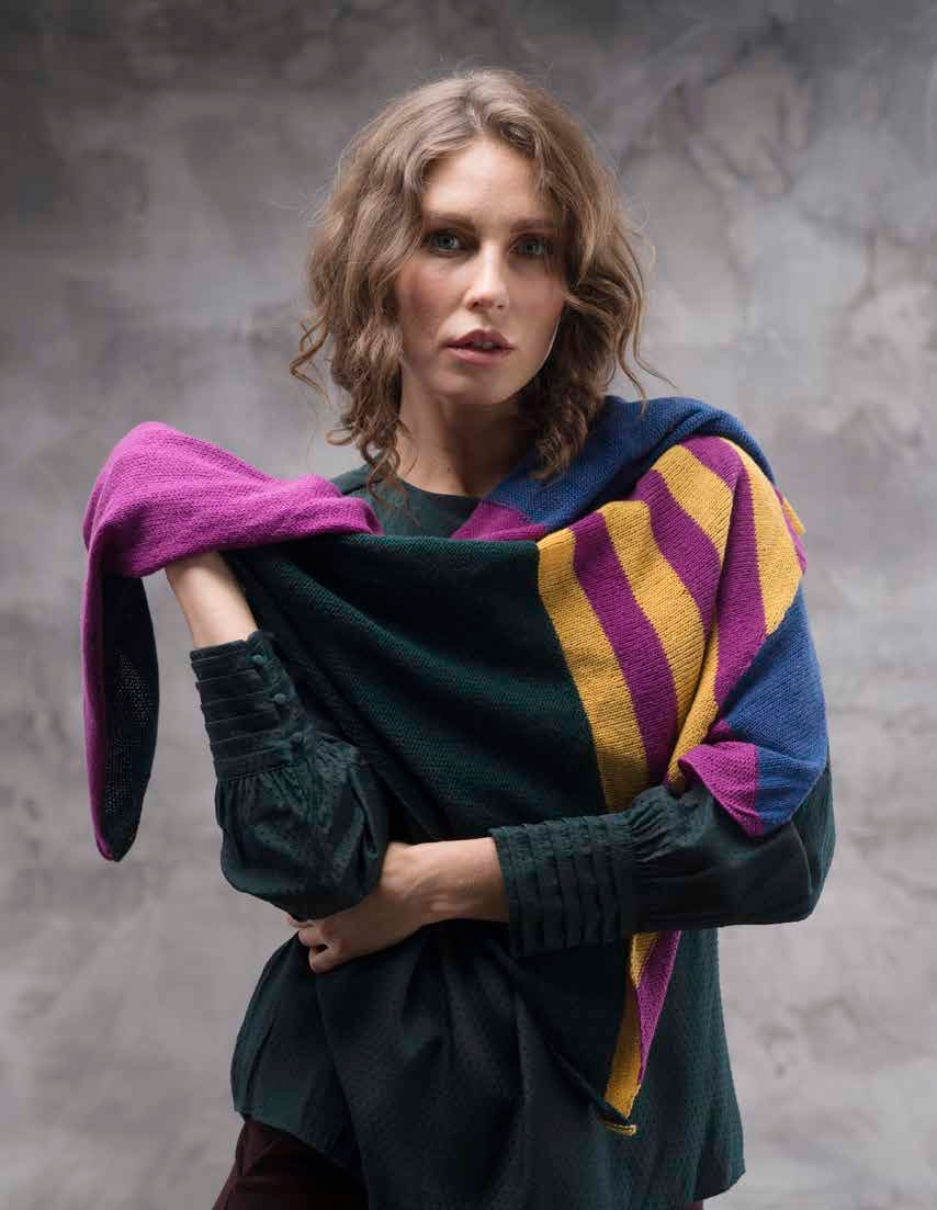 Gedifra Cashmere Lace (95% cashmere, 5% wool; 175 m [192 yd]/25 g): 25 g each in blue col 02807 (col 1), yellow col 02803 (col 2), dark green col 02808 (col 3) and cyclamen col 02806 (col 4).