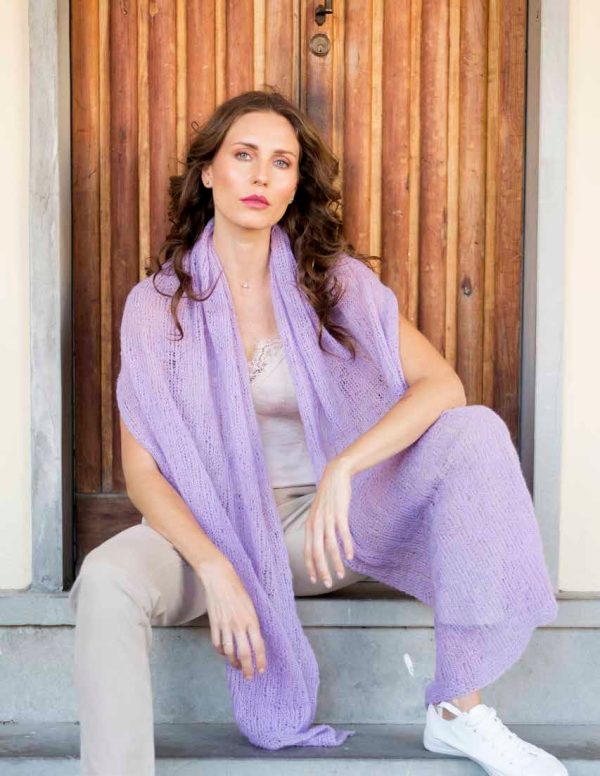 MATERIALS: Gedifra Soffio (37% Alpaca, 37% Wool, 26% Silk: 187 m [205 yd]/25 g) 125 g in Lilac Col 0615 for A or 125 g Light Blue Col 619 for B One pair size 5.5 mm (US 9) needles.