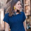 MATERIALS: Gedifra Riviera (72% cotton, 16% silk, 12% viscose; 100 m [110 yd]/50 g): 350/400/450/500 g in Dark Blue col 01354 Size 4 mm (US 6) needles Size 4 mm (US G/6) crochet hook