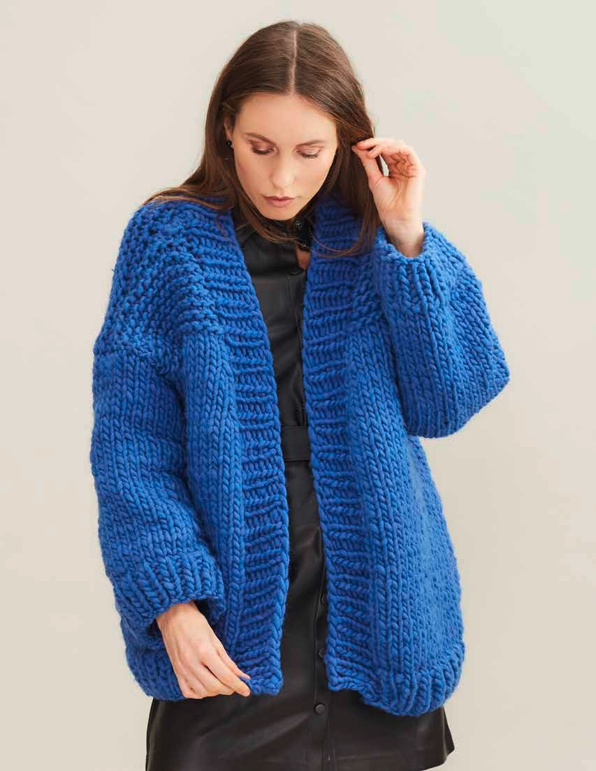 MATERIALS: Gedifra „Perulana“ (100% Wool, 50 m/100 g): 1200/1300/1500 g in Blue #0519. 1 Circular needle size US 19 (15mm), 4 stitch markers