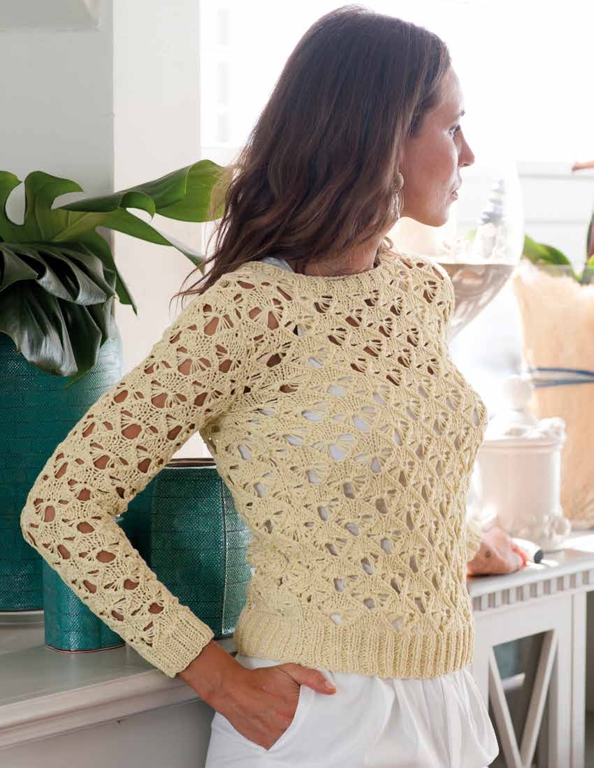 MATERIALS: Gedifra Arborea (100% cotton; 140 m [154 yd]/50 g): 300/450 g in Gold col 02205 Size 5.5 mm (US 9) needles Size 5.5 mm (US 9) circular needle